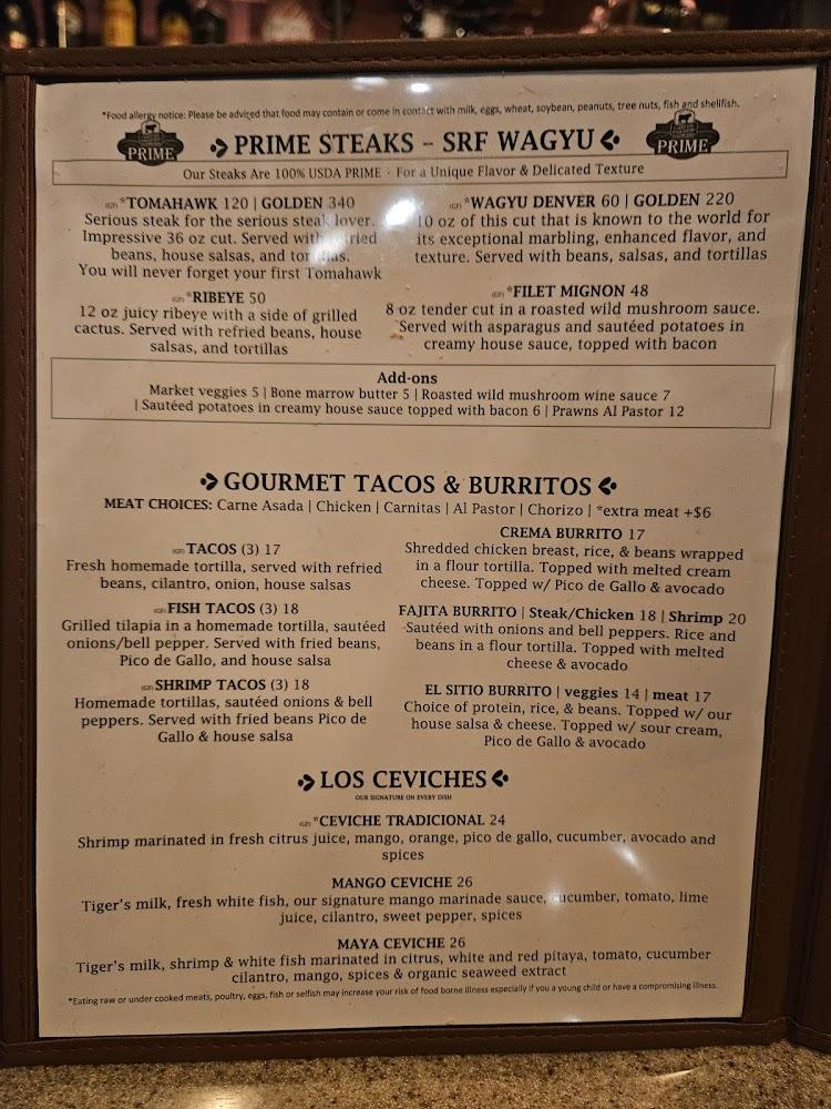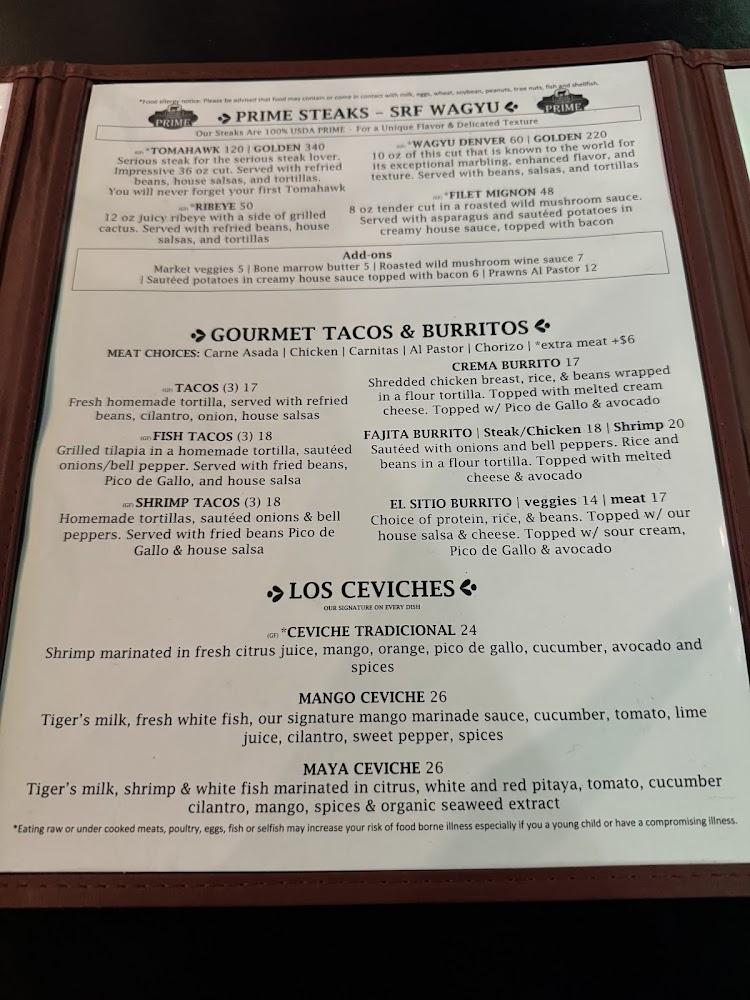 EL SITIO's menu offers a delightful range of options suitable for everyone. From breakfast to dinner, dishes emphasize fresh ingredients and bold flavors. Enjoy a variety of appetizers, such as guacamole and street corn, perfect for starting your meal. Customers rave about the prime steaks, specifically the Tomahawk and Wagyu selections, which are seasoned and cooked to perfection.